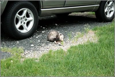 Yeah. I eventually got home and as I walked in through my drive-way, this possum scares the ever-living shit out of me. I feel bad for it because as you can see, it's diseased... or just playing possum.